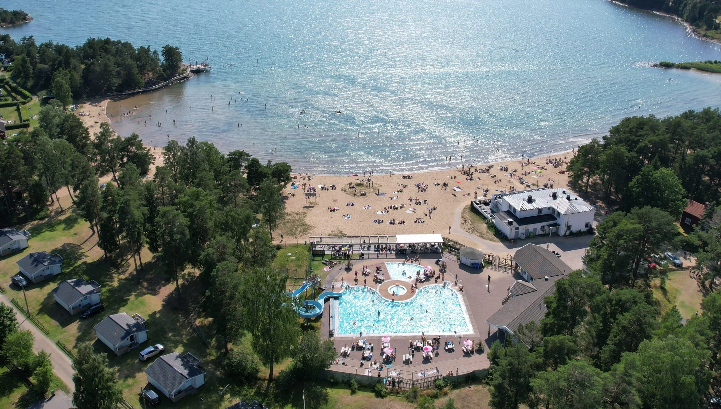 Nestled along the northern shores of Lake Vättern, Harge Bad & Camping is situated by one of Sweden’s finest inland beaches. This long, child-friendly sandy beach boasts wonderfully clear water, inviting families to enjoy a day of fun and relaxation. Known as “Nerikes Riviera,” the campsite is enveloped by the magnificent nature surrounding Northern Vättern.